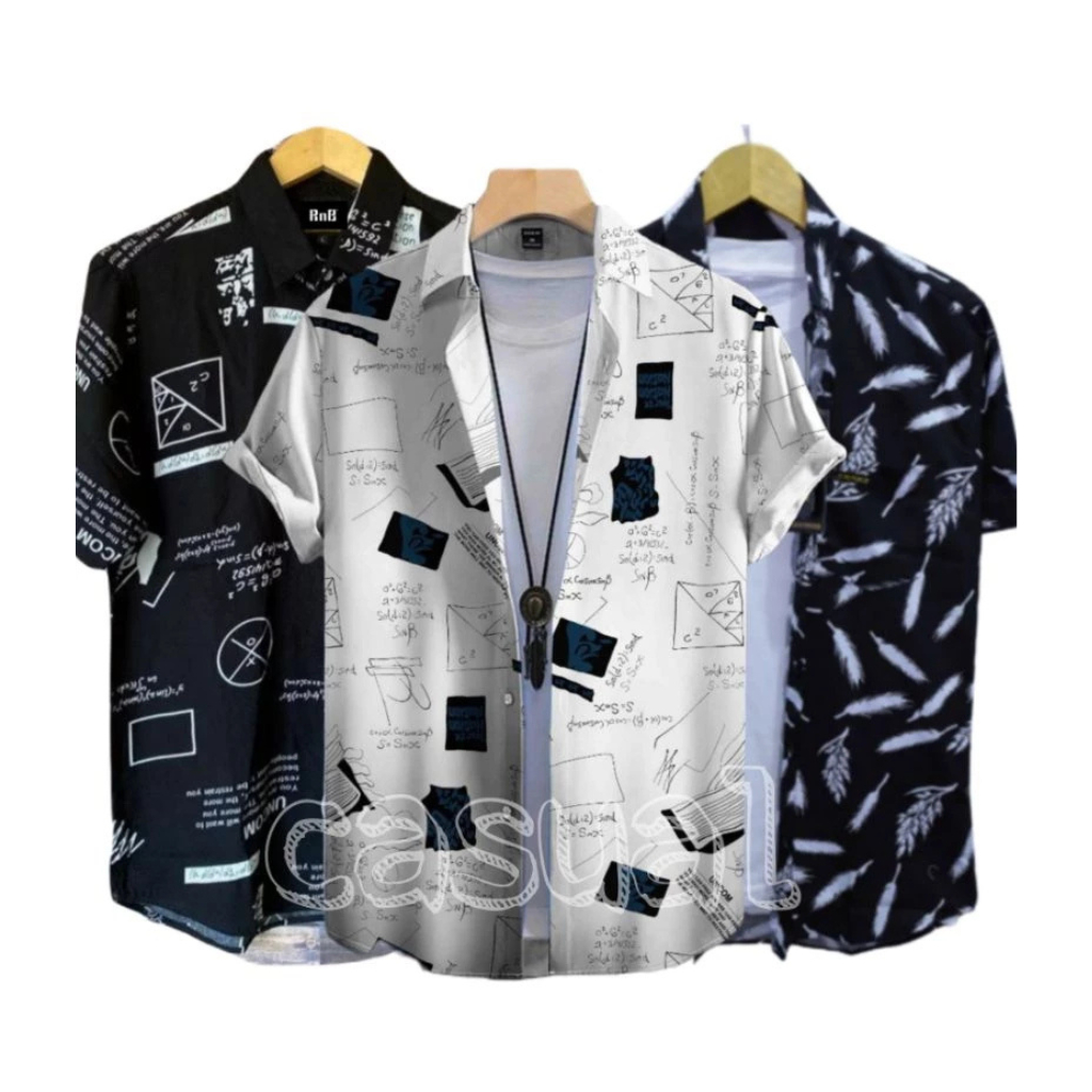 Baju Kemeja Hem Motif Lengan Pendek Unisex Kemeja Pantai Hawai Kekinian / Baju Kemeja Hem Motif Abstrak Vintage Casual