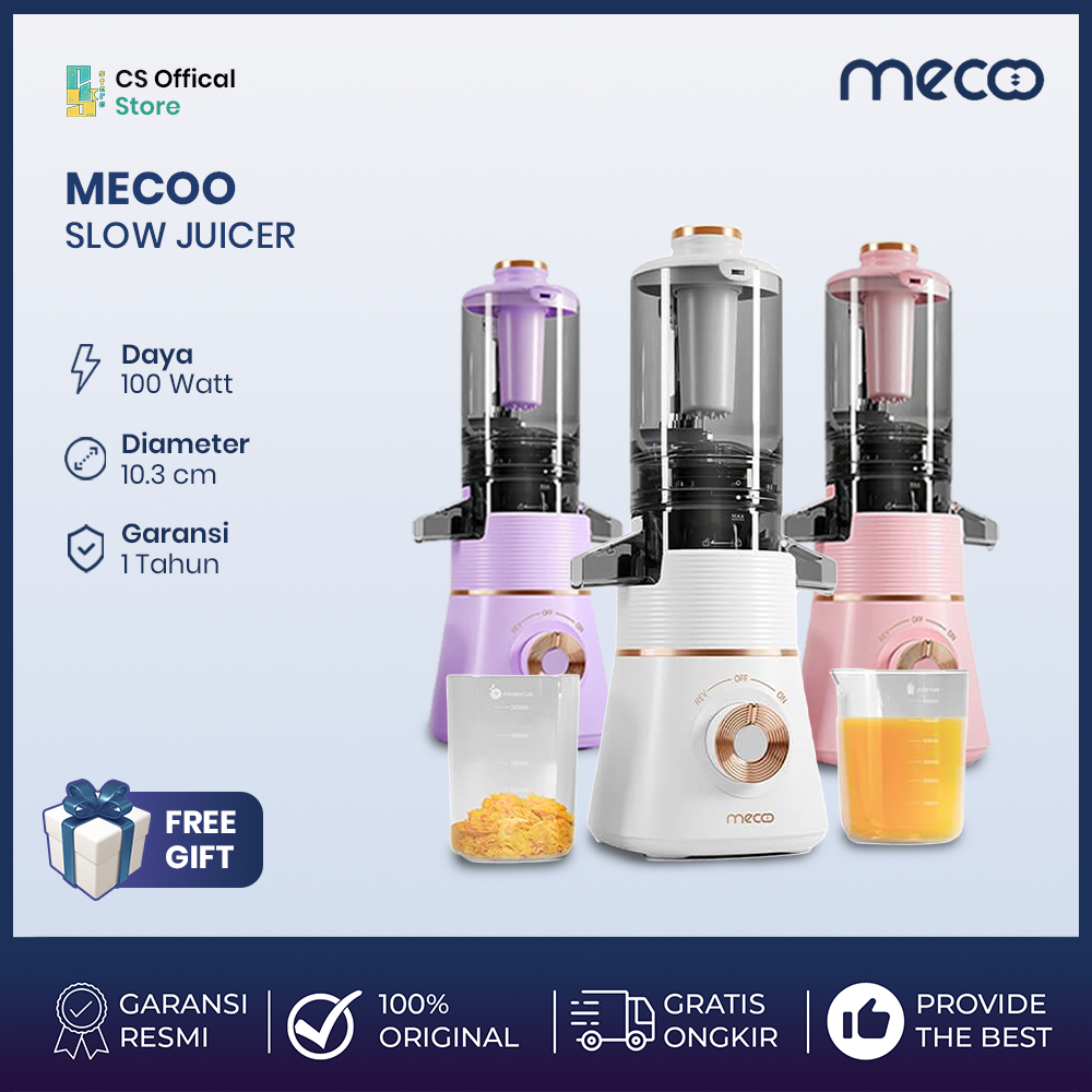 [Mall] Slow Juicer MECOO Aesthetic Extra Big Mouth EasyJuice Filter-Free EasyClean 100Low Watt Original Terbaru Terlaris