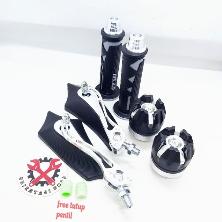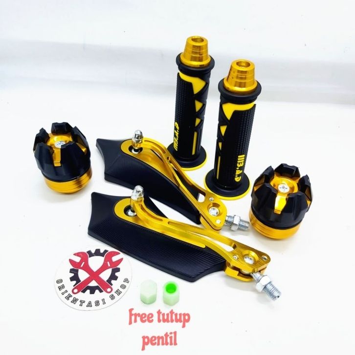 paket hemat handgrip segitiga + jalu stang + spion batman + jalu as + free tutup glow ini the dark