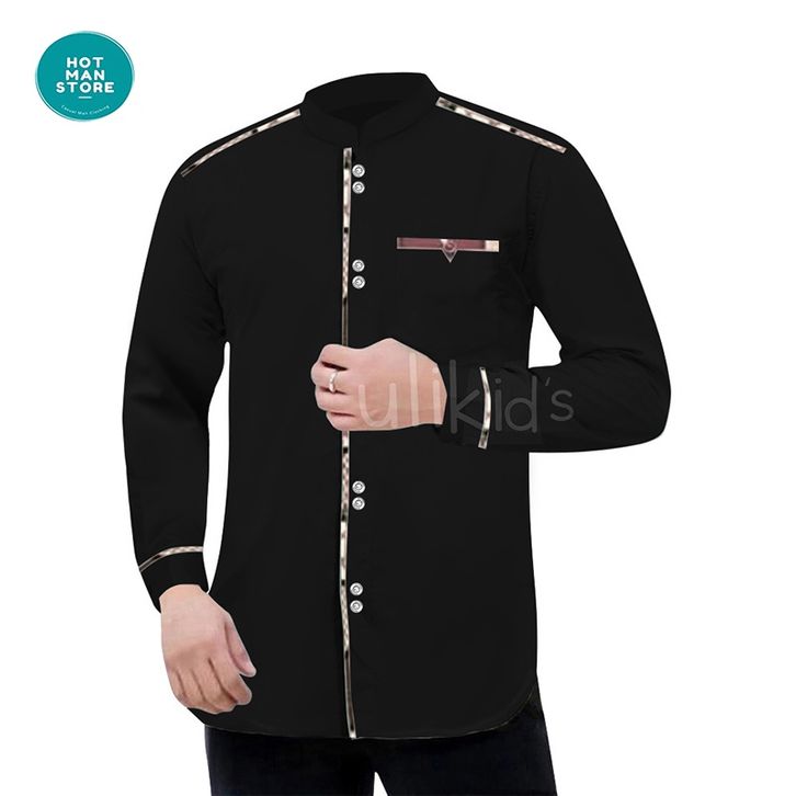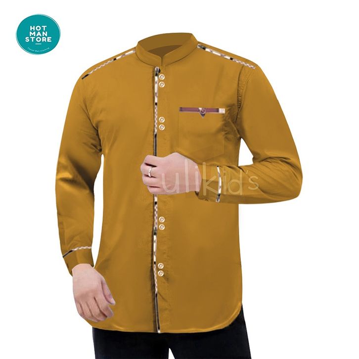 TERLARIS Hotman Baju Koko Dewasa Muslim Kombinasi Batik Lengan Panjang Bahan Adem Serap Keringat