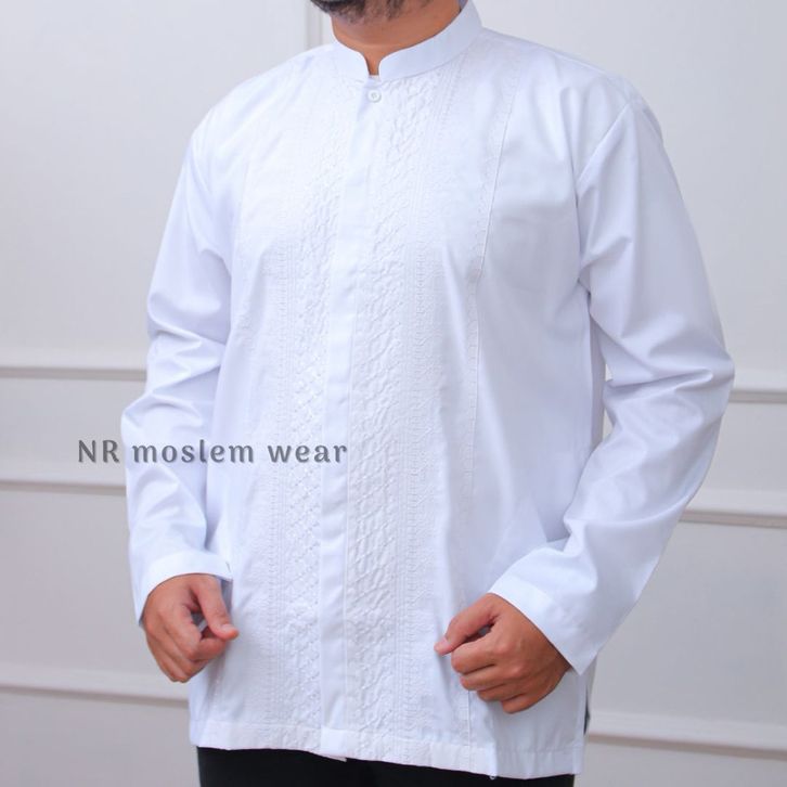 TERLARIS BAJU KOKO KATUN DEWASA BORDER PUTIH LENGAN PANJANG , KEMEJA KOKO PUTIH ARK KZ NEW