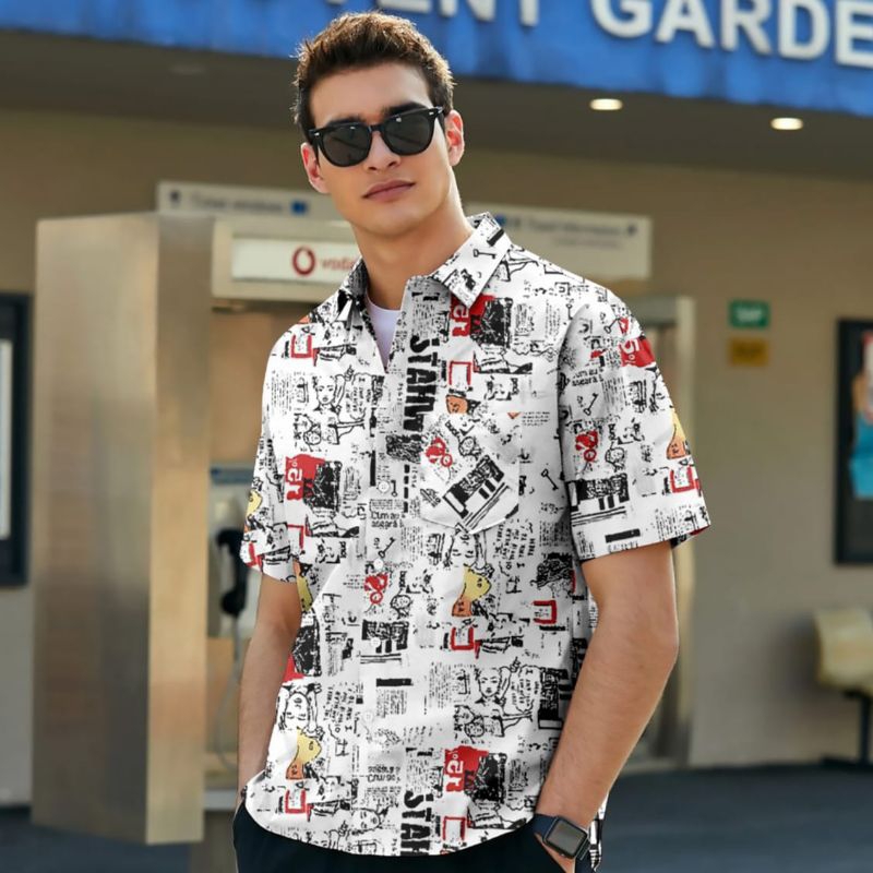 Kemeja motif pantai,Hem motif lengan pendek terbaru