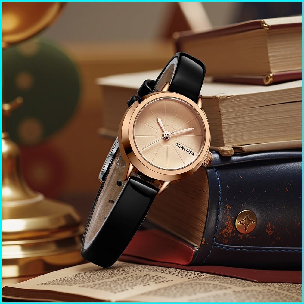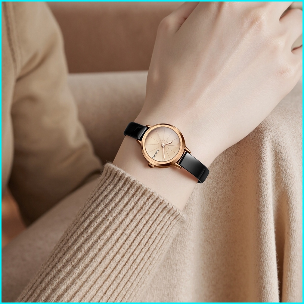 Sunlifex Jam Tangan Wanita Korea Retro Mini Dial Kasual Tali Kulit Jam Tangan Cewek Original 3343