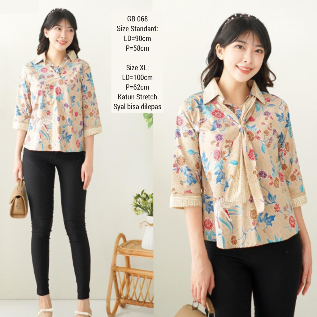 BLOUSE BATIK MICHA 068 ATASAN KERJA KANTOR WANITA MURAH BAJU CEWEK CANTIK MODIS ETNIK