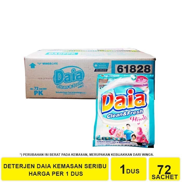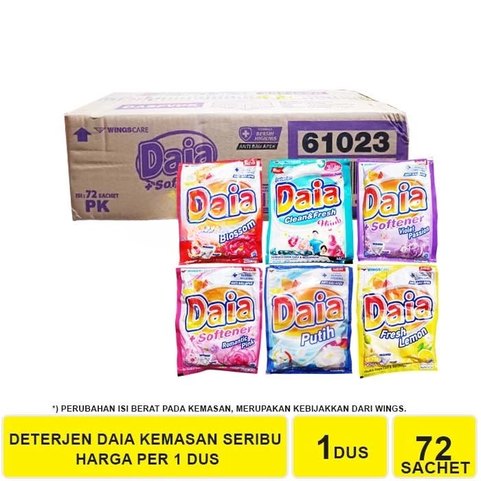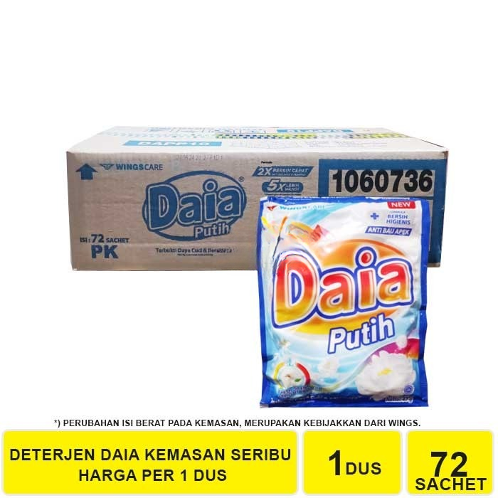 1 DUS ISI 12 RENCENG / 72 SACHET DAIA DETERGENT BUBUK 46 GR (KEMASAN SERIBU)