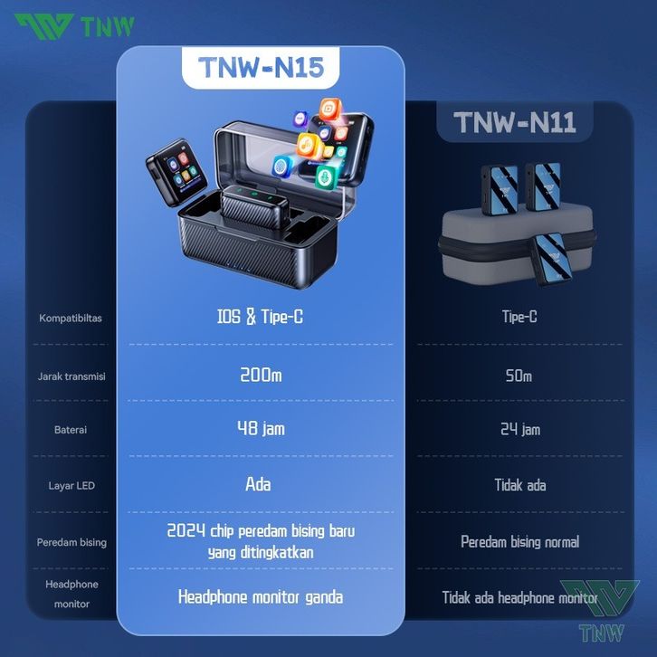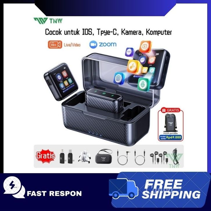 Microphone Clip On TNW N15 Wireless Mic Hp dan Kamera Lavalier Mikrofon untuk Live Vlog Tiktok Youtube