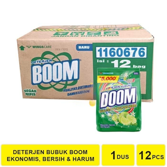 1 DUS ISI 12 PCS DETERJEN BUBUK BOOM KEMASAN 280 GR