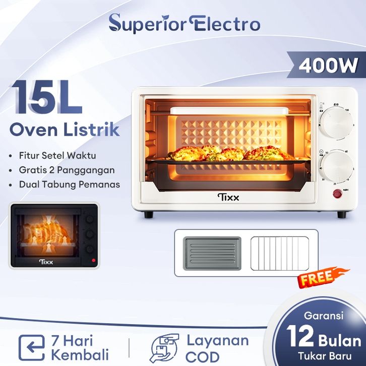 PREMIUM []Superior 15L Oven Listrik Low Watt 400W Oven Tangkring Dengan Timer Panggangan Roti Kompor ocimnf