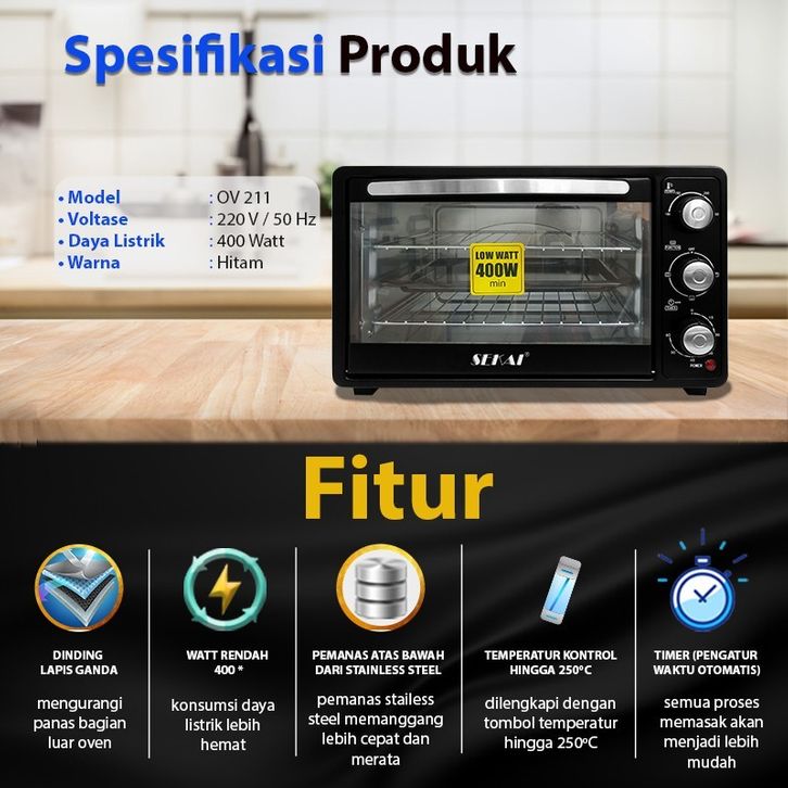 TERMURAH SEKAI Oven Listrik Low Watt Kapasitas 24L UkL / 21L UkD Pemanggang Makanan Serbaguna - OV 211 unifb