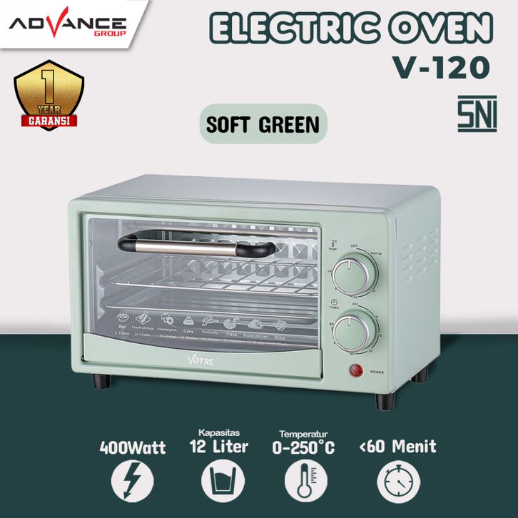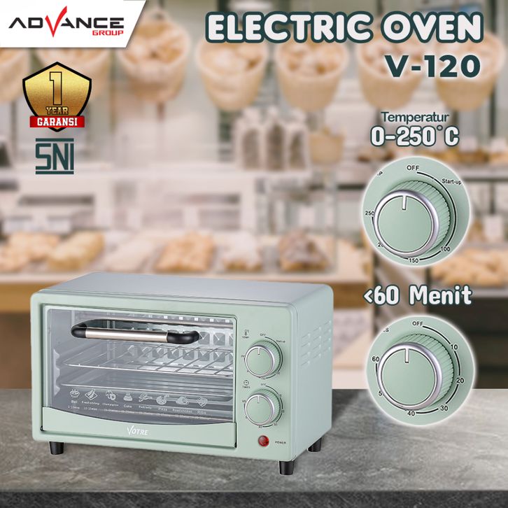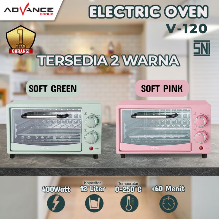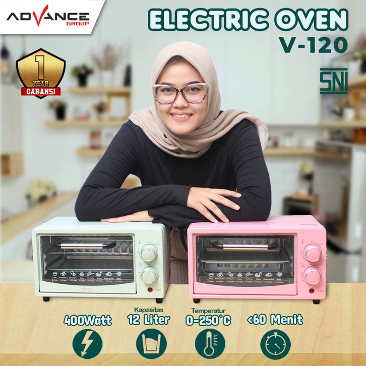 TERBARU READY!!! ADVANCE Oven Listrik V-120 Kapasitas 12L Pemanas Atas Bawah Stainless Steel Low Watt 400 Watt
