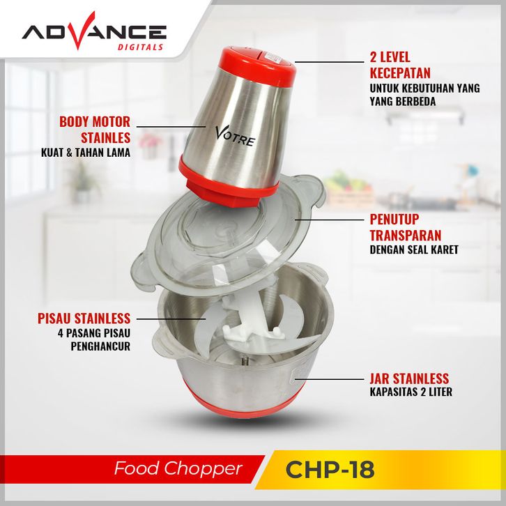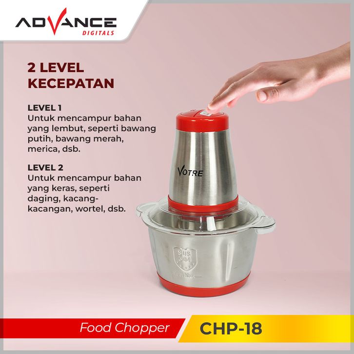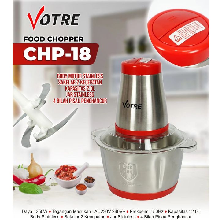 BARU VOTRE 2L Blender Chopper 2 Liter Stainless Steel Penggiling Daging Meat Grinder CHP-18 eholl