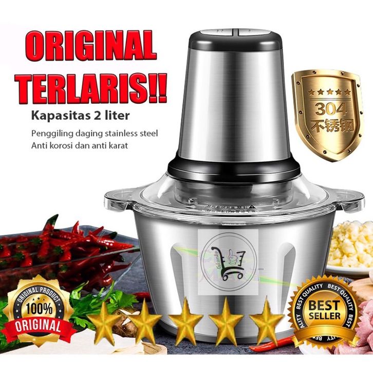 PROMO BLENDER DAGING STAINLEES STEEL 2 LITER / BLANDER FOOD CHOPPER STAINLESS / MEAT GRINDER STAINLESS PENGGILING