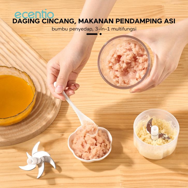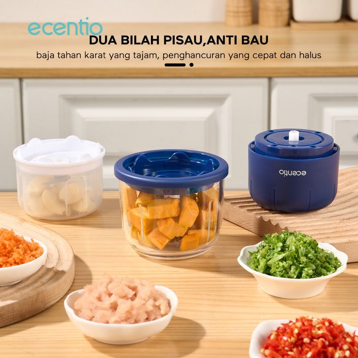 MURAH ecentio chopper mini kaca 2in1 Blender 6 pisau+3 pisau Penggiling Daging 350ml+250ml Food Processor