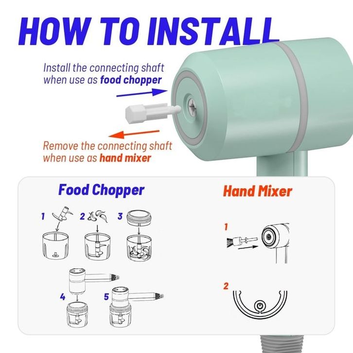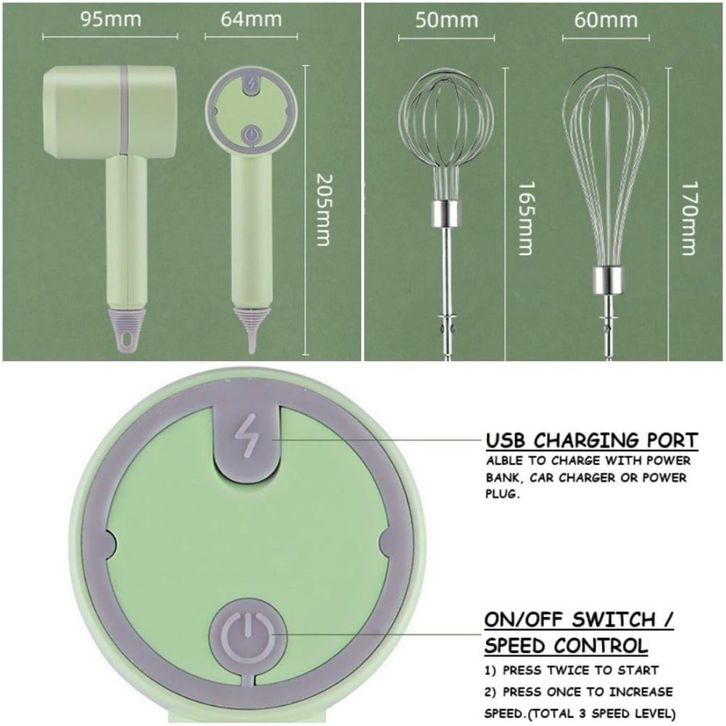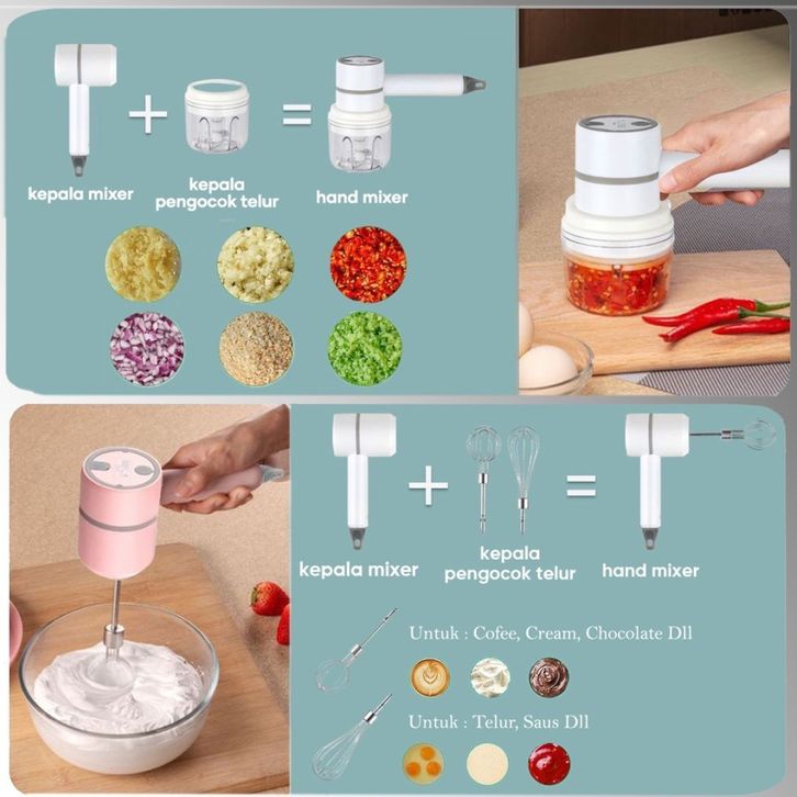 BARU Wireless Portable 2 in 1 Hand Mixer / Pengocok Telur + Chopper ebokg