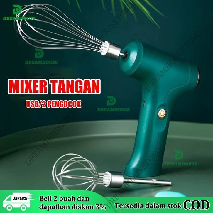 BARU Mixer Tangan Mini Tanpa Kabel USB Rechargeable Hand Mixer 2 Detachable Whisk/Super Hand Mixer Free 2 Buah
