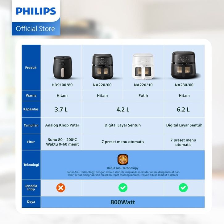 ORIGINAL Philips Airfryer Terbaru 800 W - Transparan BEST CHOICE - NA220/10 - Putih - air fryer low watt