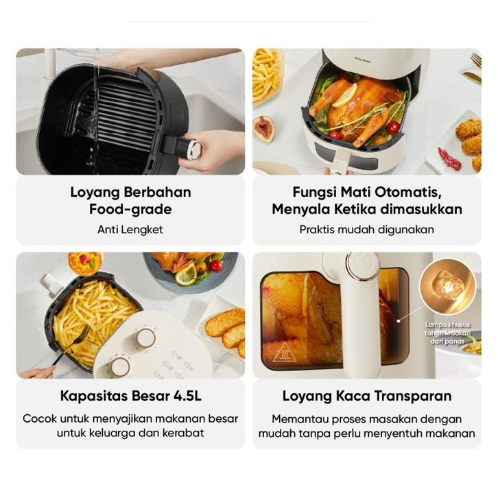 NEW Arrival Gaabor Air Fryer Low Watt 800W 4.5L Touch Screen Serbaguna Anti Lengket Kaca Transparan AF-45T01A