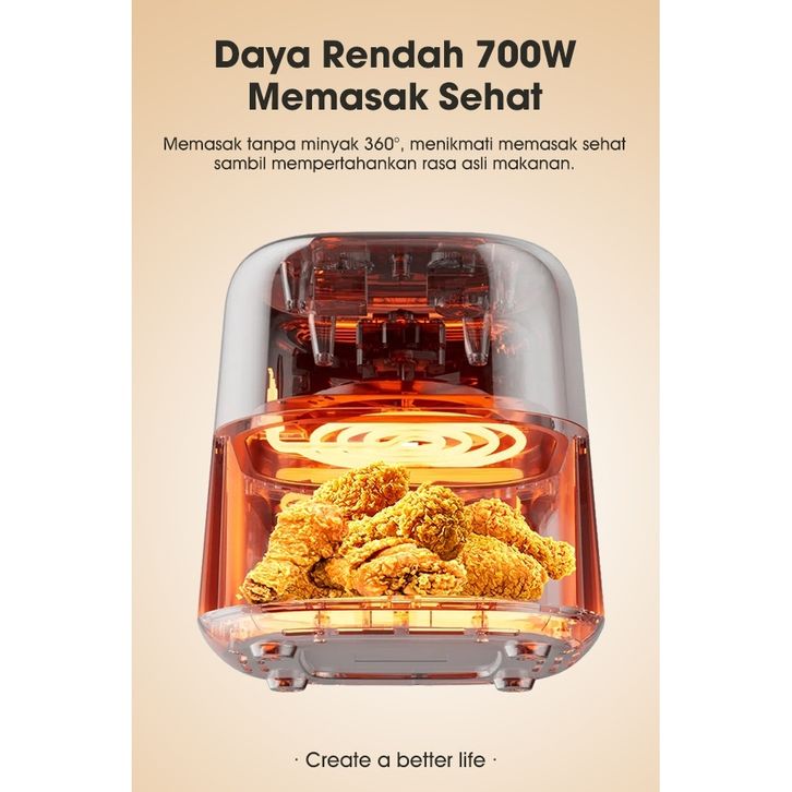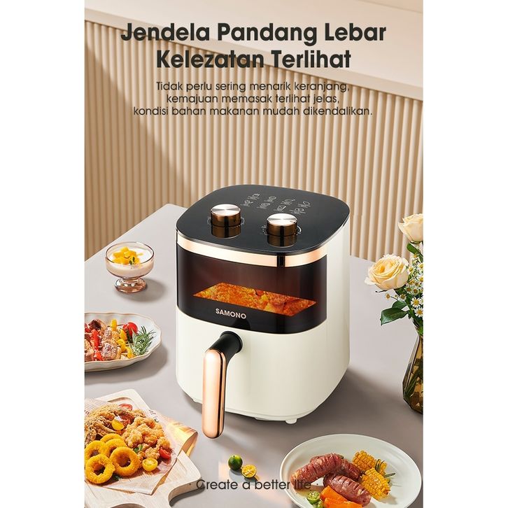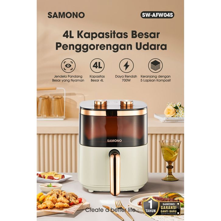 PREMIUM SAMONO Air Fryer Transparan 4 Liter 700 Watt SNI Hemat Daya Kapasitas 4 Liter SW-AFW04S unolg