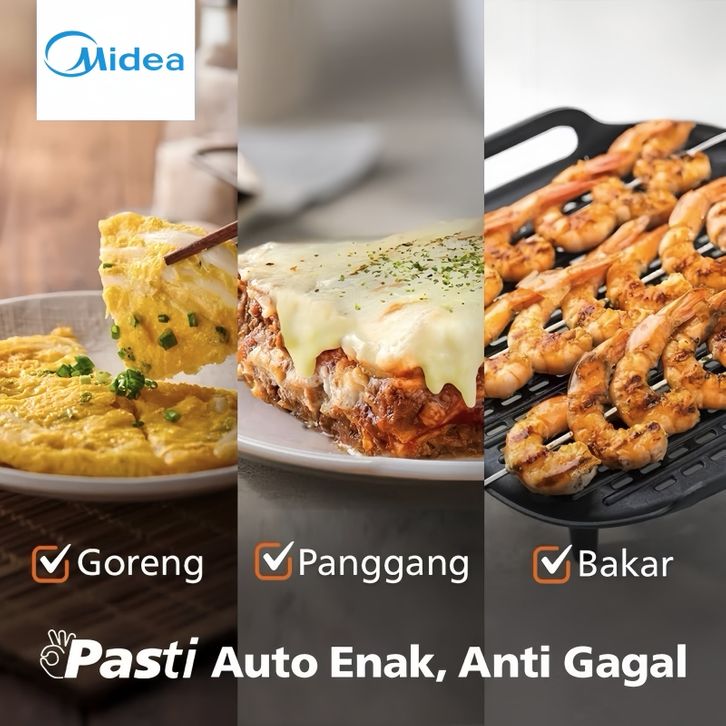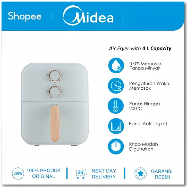 BARU 【Hadiah Pernikahan】Midea Airfryer Watt Model Putar Pegangan Kayu MAF400B0ADG obarl
