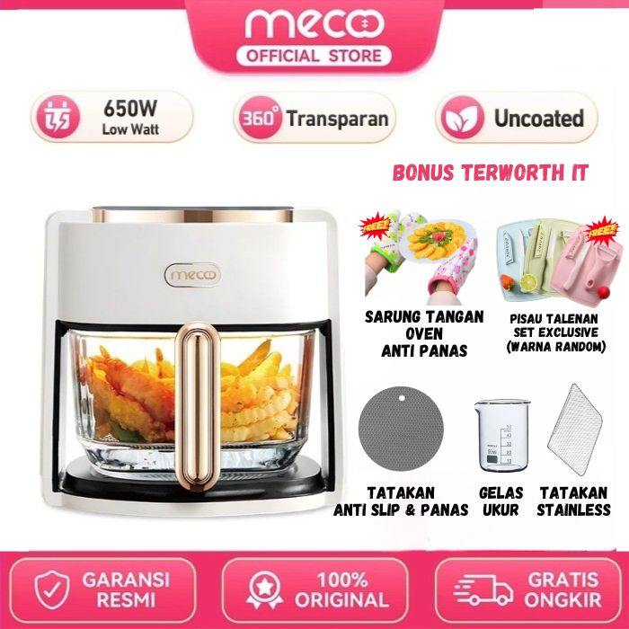 MURAH Mecoo Most Aesthetic Transparan Air Fryer 650 Low Watt 5L Hemat Listrik Mesin Goreng Tanpa Minyak idimnc