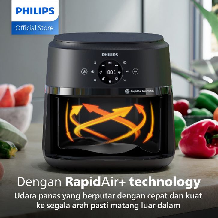 PREMIUM BARU! PHILIPS Airfryer Low Watt 800 W Transparan KAPASITAS BESAR 6.2 L NA230/00 - Air fryer multifungsi
