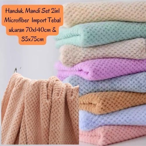NEW Arrival Handuk Mandi Set Microfiber Import TEBAL Murah Ukuran 70x140cm & 35x75cm // Handuk Dewasa/souvenir