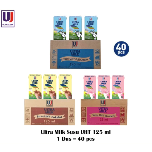 Ultra Milk UHT 125ml X 40pcs/ 1 KARTON (Coklat/Stroberi/Full Cream)