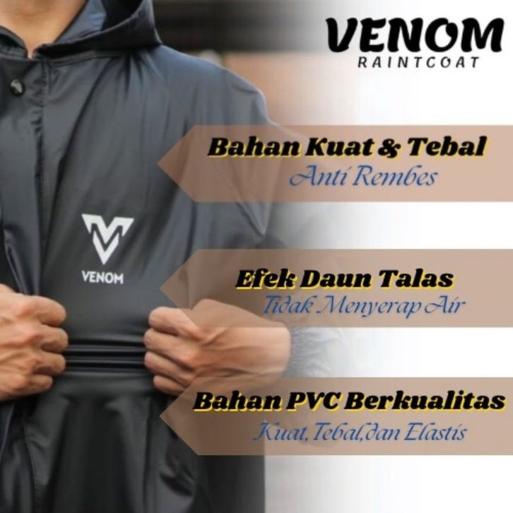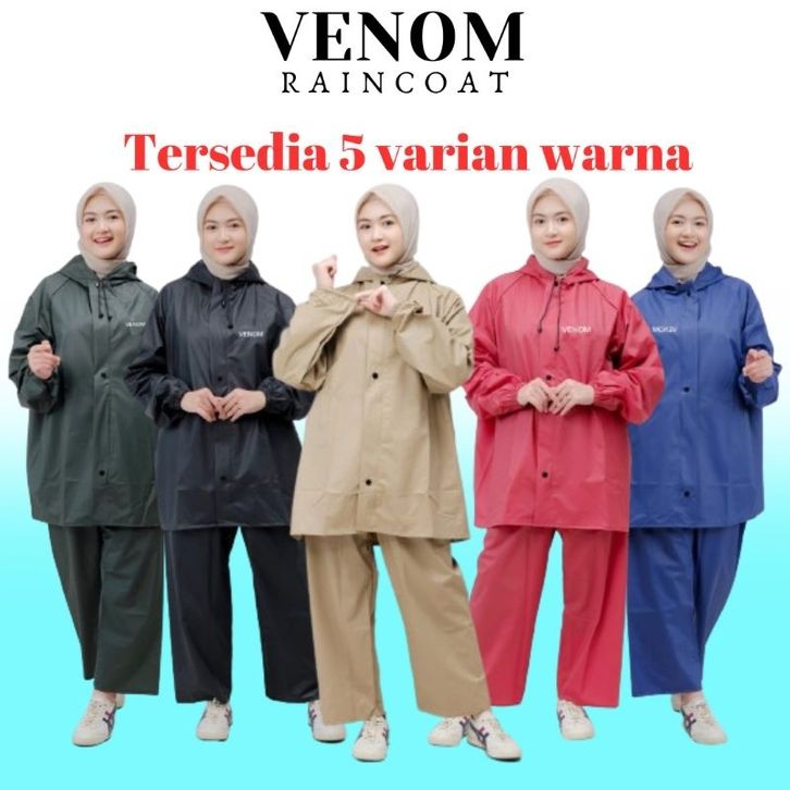 Jas Hujan Raincoat Setelan Celana Terbaik Pria dan Wanita Anti Rembes Bahan PVC 0,25 Tebal Kuat Elastis By VENOM Origina