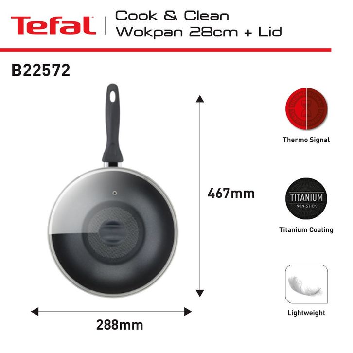 Panci Anti Lengket Tefal Wajan Cook & Clean Wokpan 28cm Dengan Tutup Lengkap