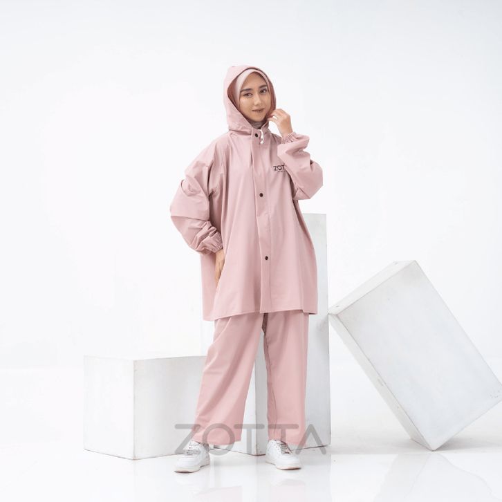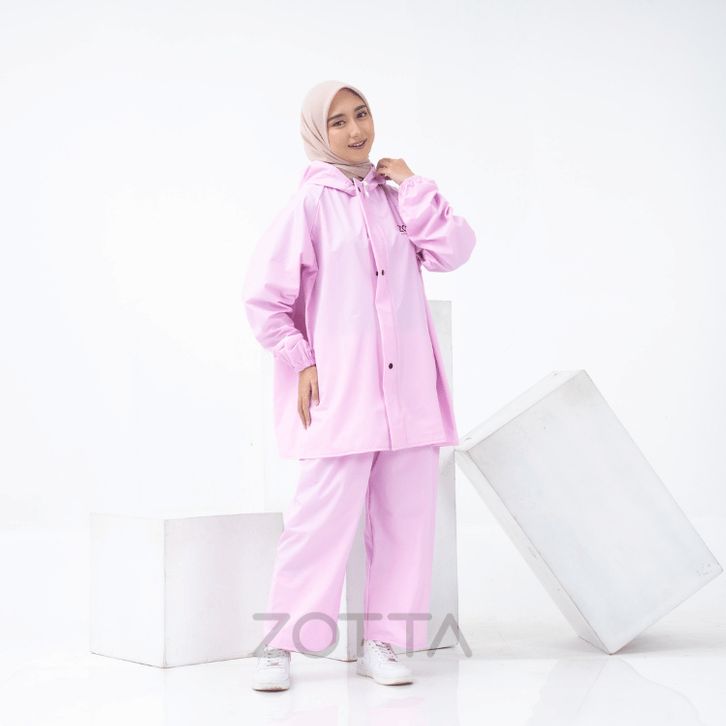 ZOTTA Jas Hujan Wanita Pink Pastel Lucu Aesthetic Stelan Celana