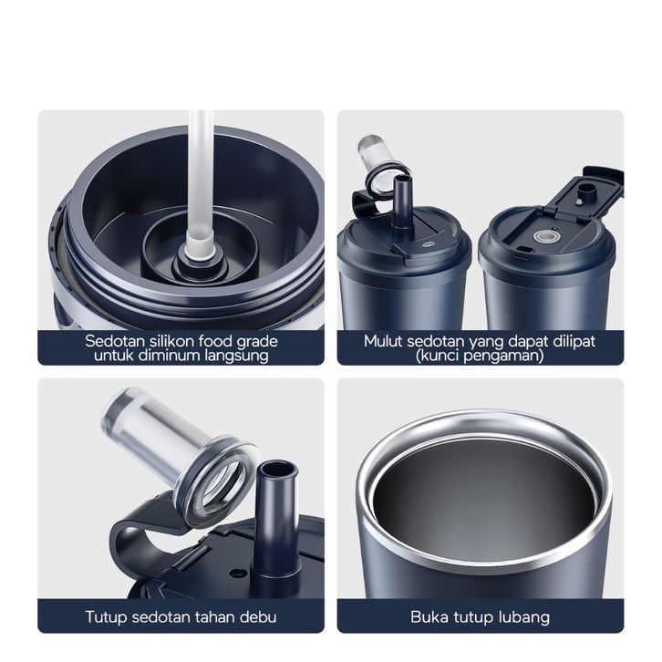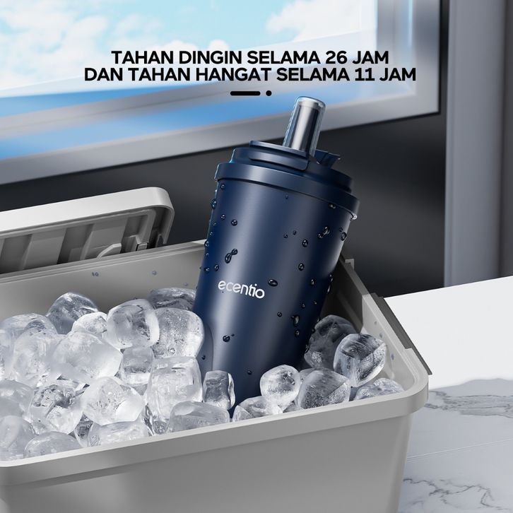 Tumbler Panas Dingin ecentio 580ml Sedotan 26 Jam Stainless Tahan Dingin Dan Panas Tumblr Termos Air Panas botol minum
