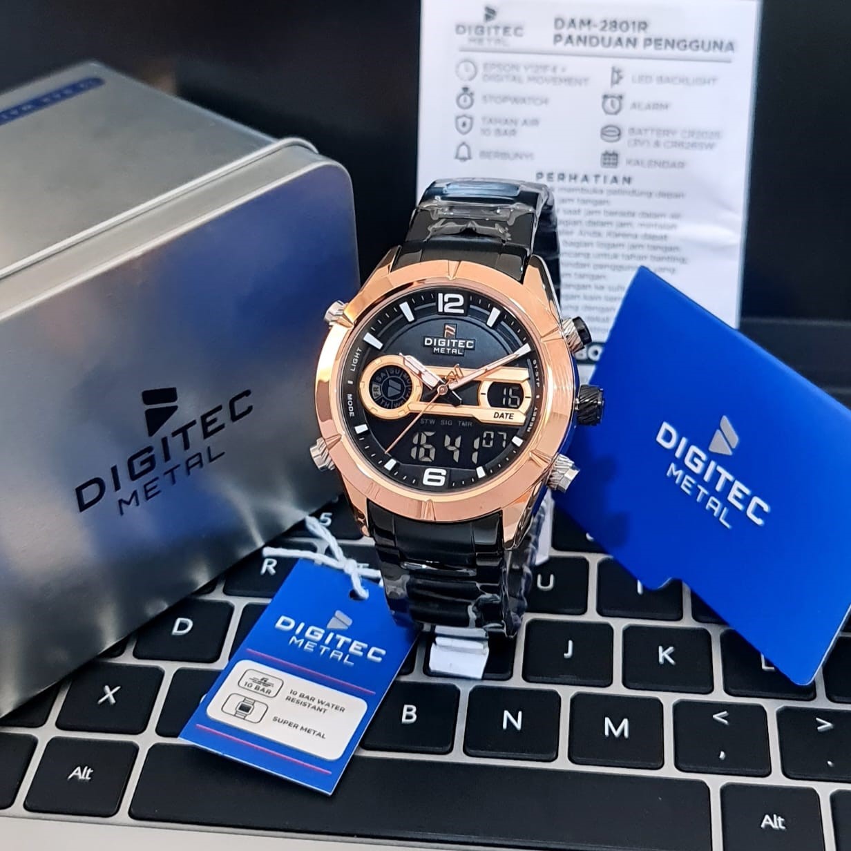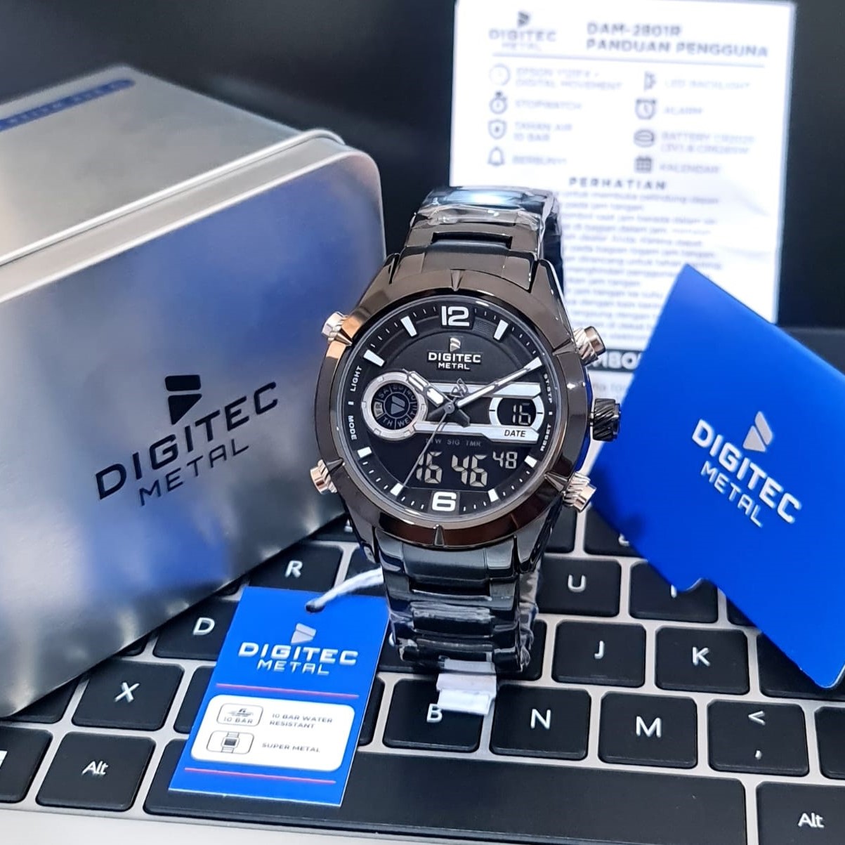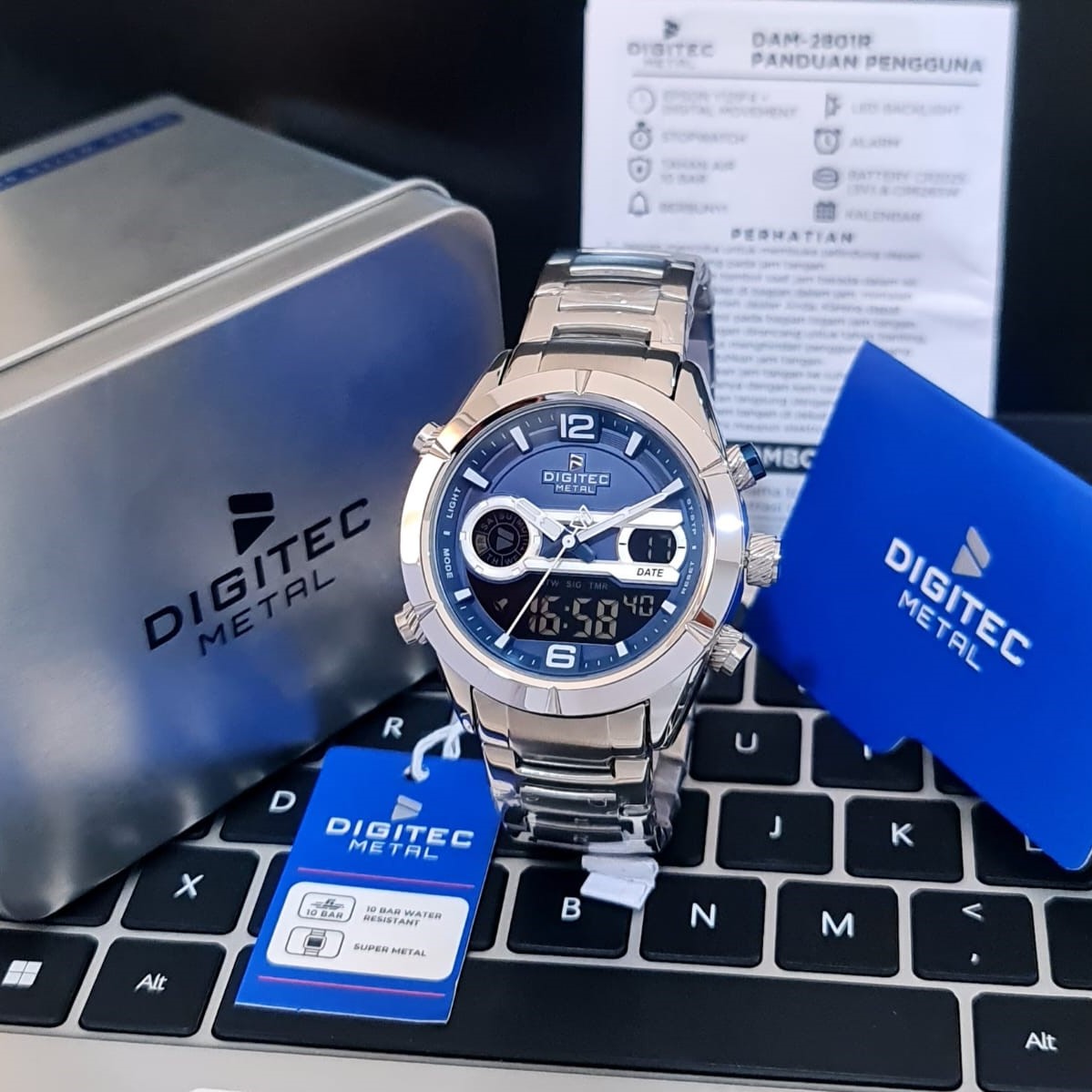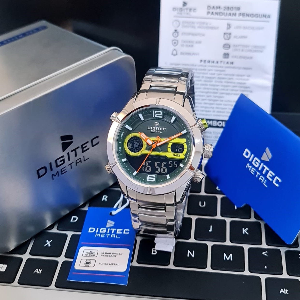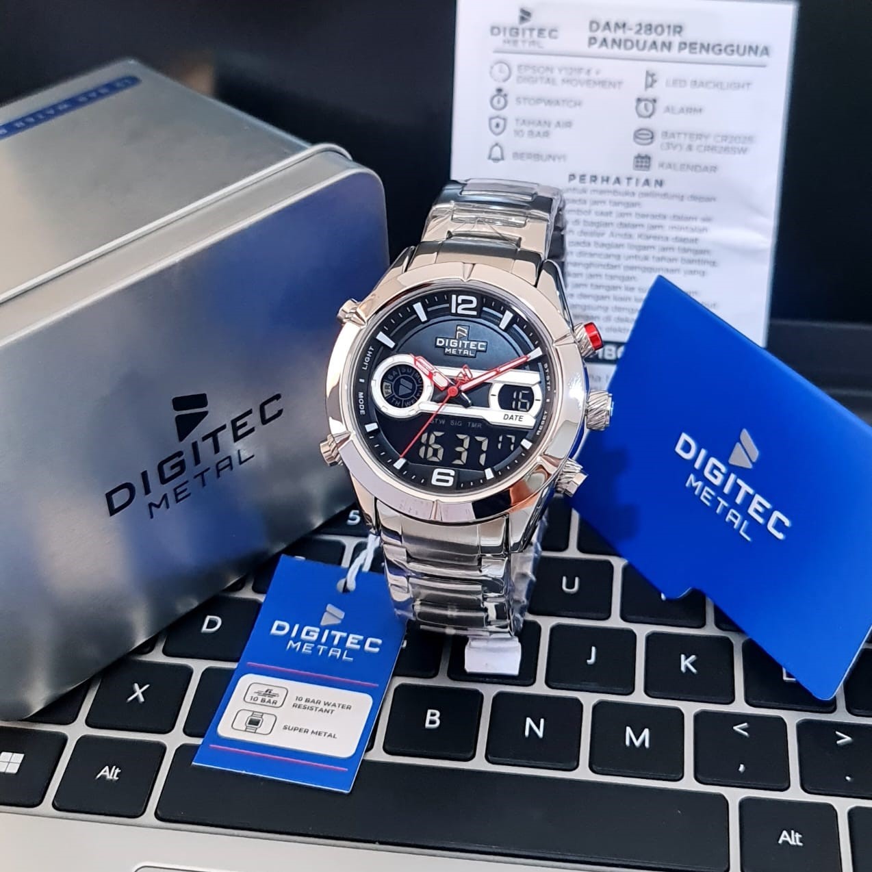 [Mall] Jam Tangan Pria DIGITEC METAL 2801 Original Analog Digital Rantai Stainless Steel Anti Air Garansi 1 Tahun