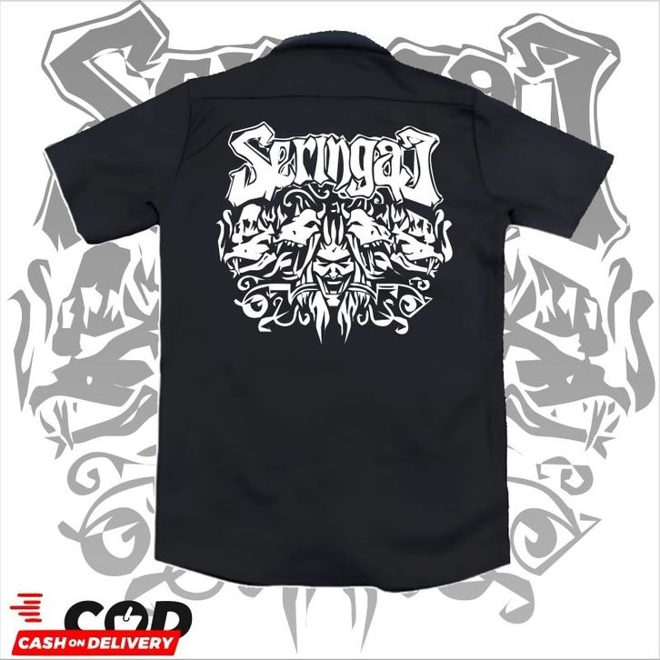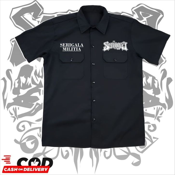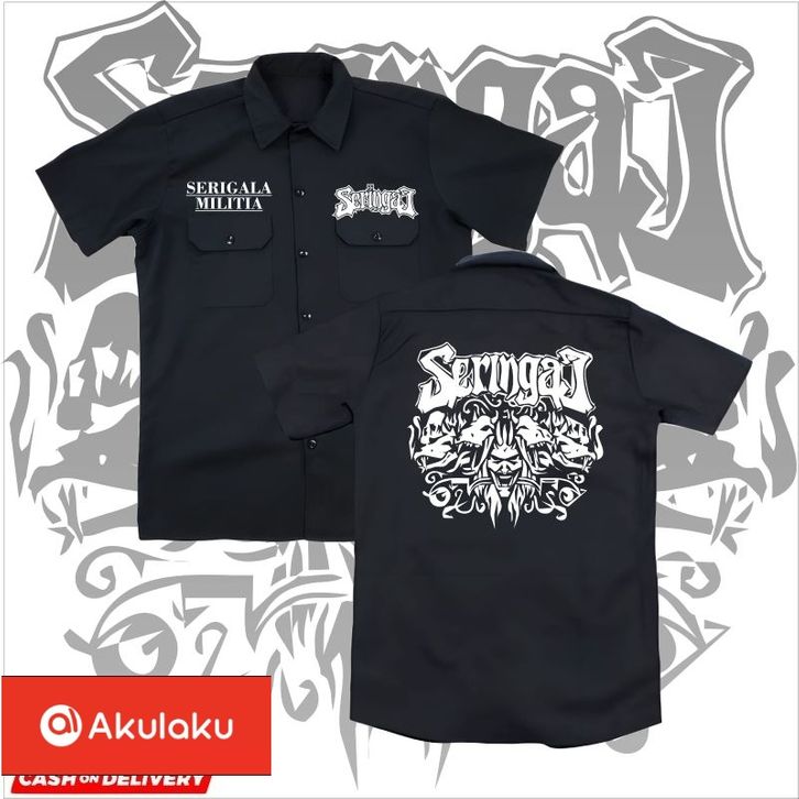 kemeja pendek WORKSHIRT Band SERINGAI original distro - kemeja casual pendek pria band metal SERINGAI distro original te