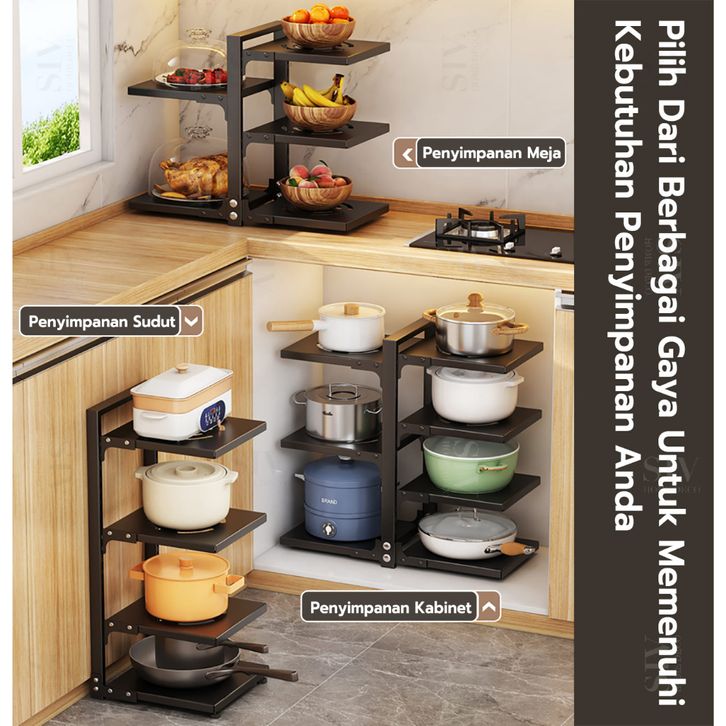Rak Panci Bawah Wastafel Dapur – Rak Stainless Steel Susun 3/4/5 Tingkat untuk Pot & Peralatan