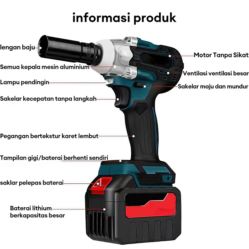 Mesin Bor Impact Baterai Listrik 1 Set Lengkap Mini Murah Cas Multifungsi Modern Apr Makita Jld Bosch wrench Drill Ryu