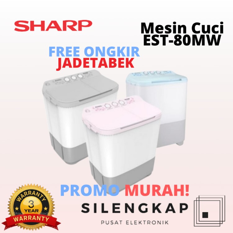 Mesin Cuci 2 Tabung Sharp EST 80 MW 8 KG GARANSI RESMI