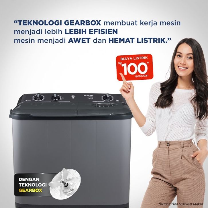 Mesin Cuci 2 Tabung Sanken Twin Tub 8-11Kg – Hemat Listrik, Kapasitas Besar, TW-882GY TW-882NP TW-880EBU TW-882BP