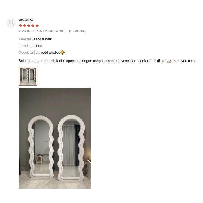 Cermin Aesthetic/Irregular Wavy Mirror/Standing mirror Aesthetic/Standing Mirror Aesthetic