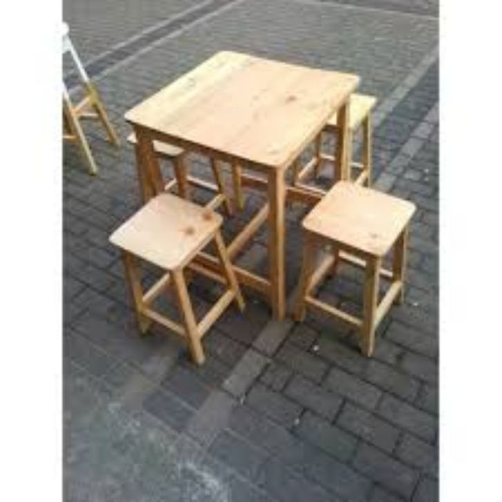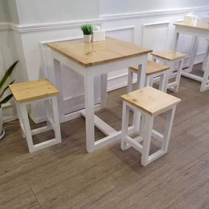 Meja Set 4 Kursi Meja Makan Meja Cafe Kaki Hitam dan Putih Bahan Kayu Ukuran 60×60×75cm