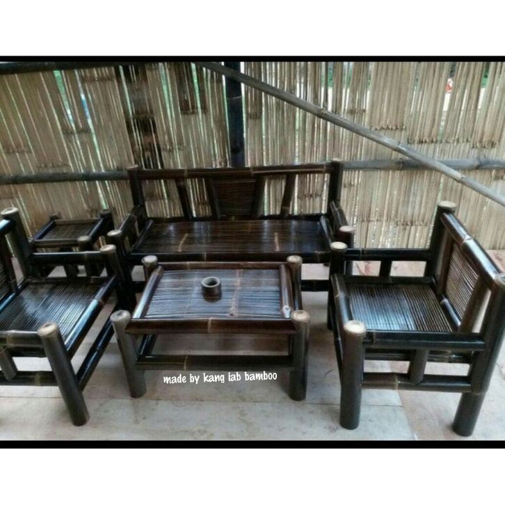 SET KURSI BAMBU KURSI TERAS DEPAN RUMAH KURSI BAMBU HITAM STANDAR BONUS MEJA SUDUT