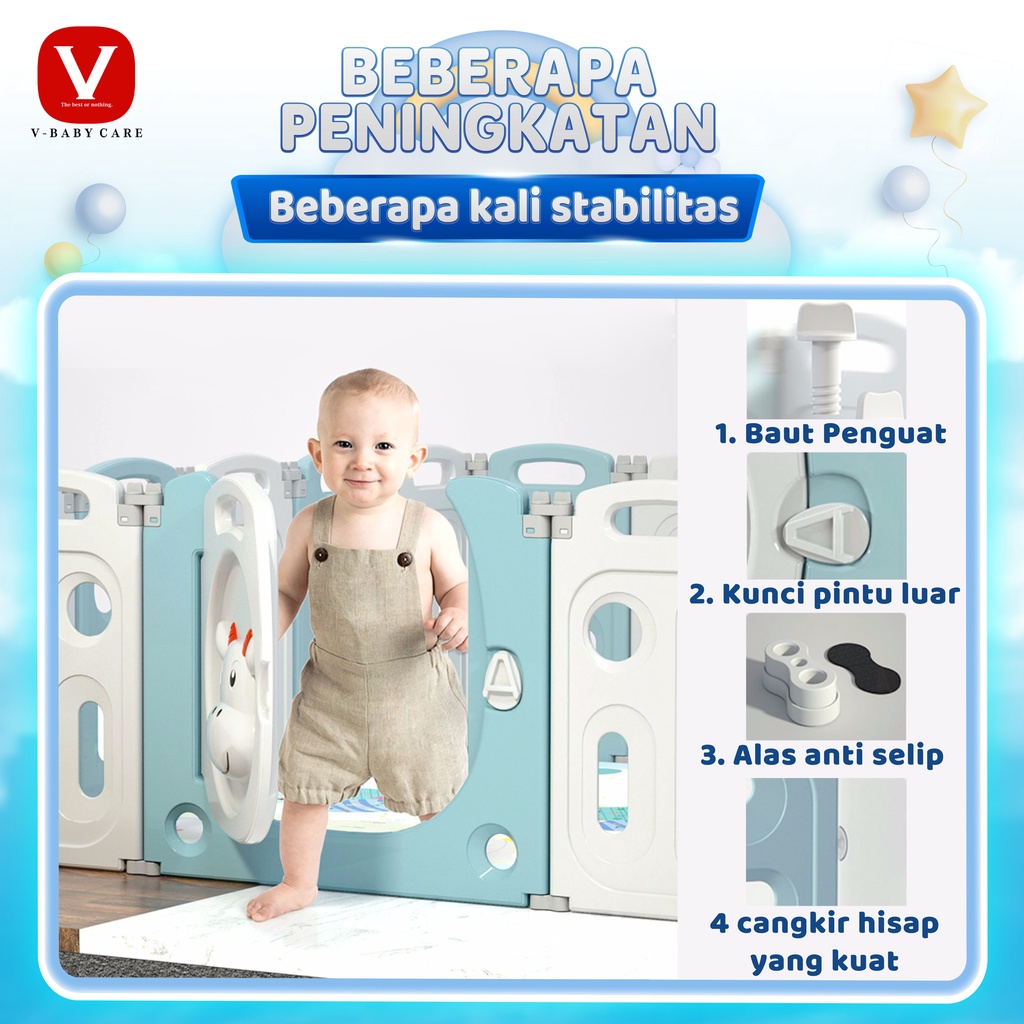 V-BABY CARE Pagar anak tempat bermain bola / Bebas Pasang/dapat dilipat Matras merangkak,ring basket/VBABY-Y2