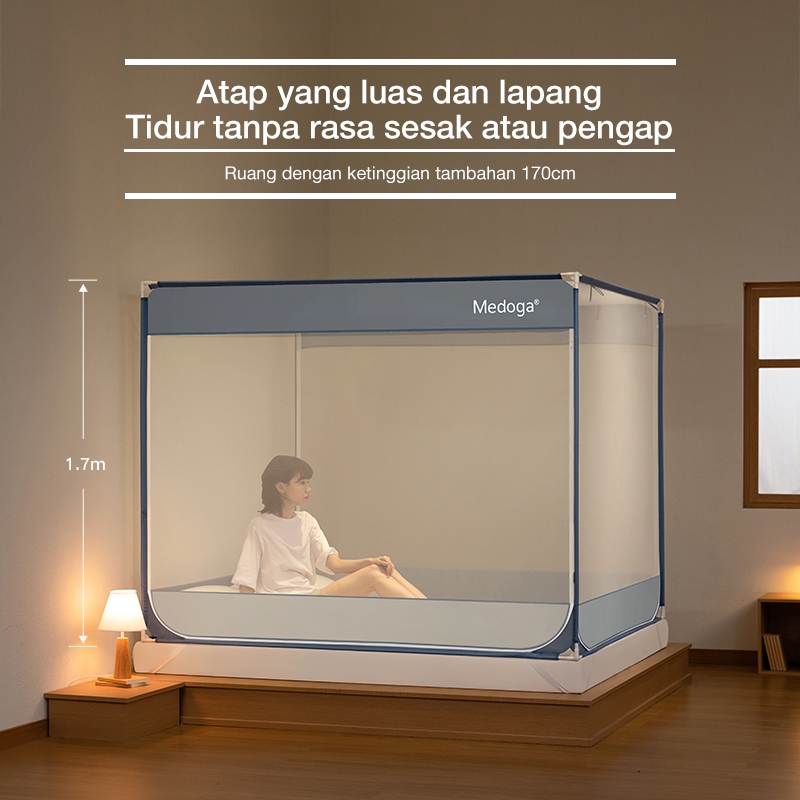 Medoga Kelambu Tidur Polos Kotak Anti Jatuh Anti Nyamuk Bayi Anak Dewasa Bedrail Aman