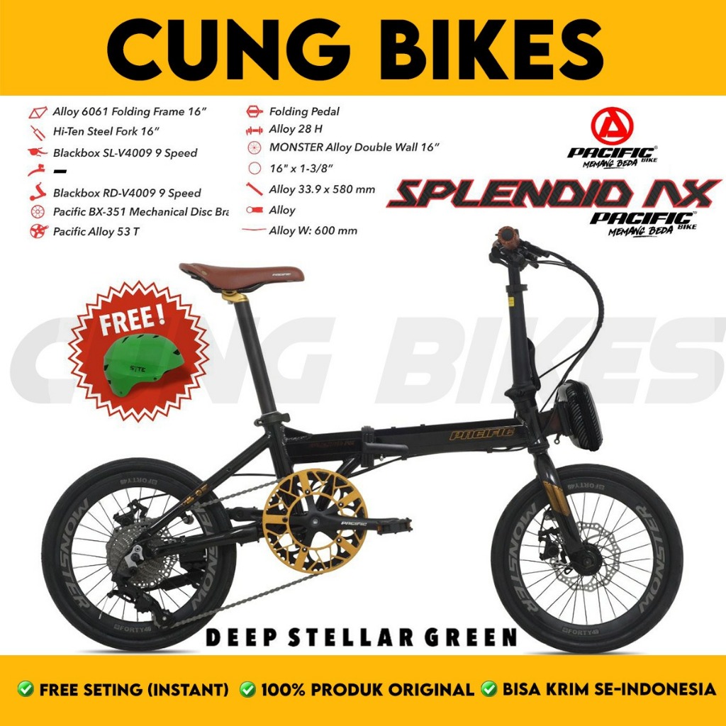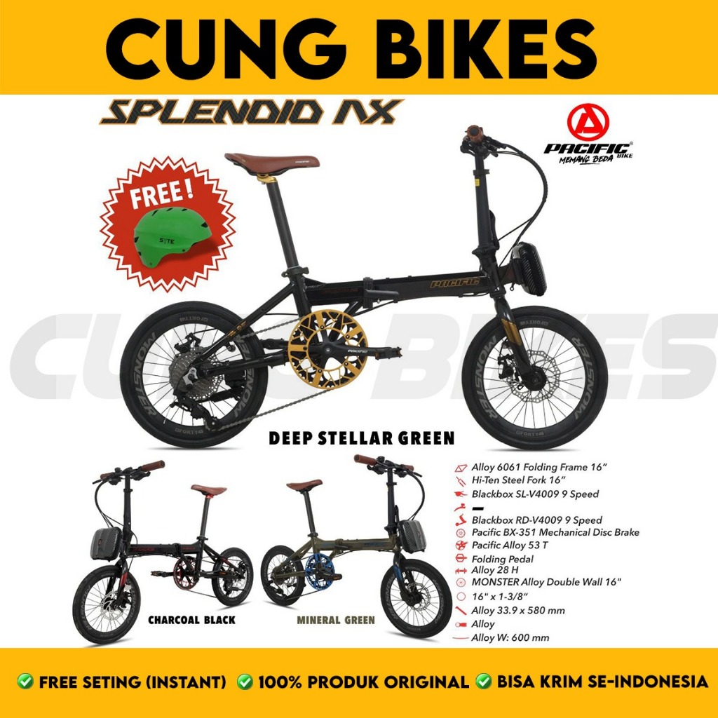 Sepeda Lipat PACIFIC SPLENDID AX ukuran 16 Inch Shimano 9 Speed Extra Bonus Garansi Resmi 5 Tahun