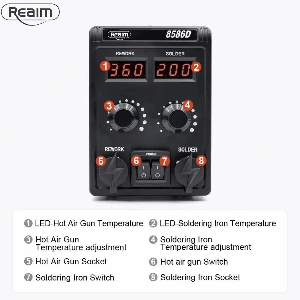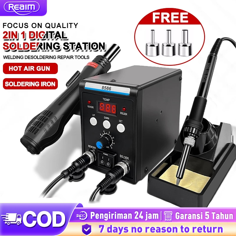 REAIM Solder Station Digital 8586D Stasiun solder ulang 2 in 1 Hot Air Solder Blower Alat desoldering ()