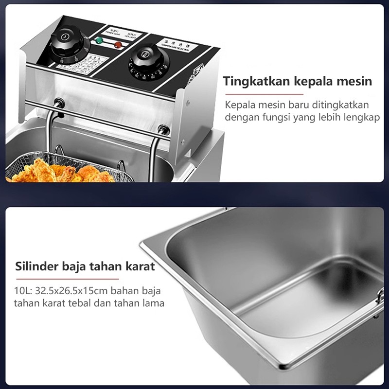 LENODI 8L Penggoreng Listrik, Penggorengan Dalam, Multifungsi, Kental, Kapasitas Besar, Ayam Goreng, Kentang Goreng, Tus