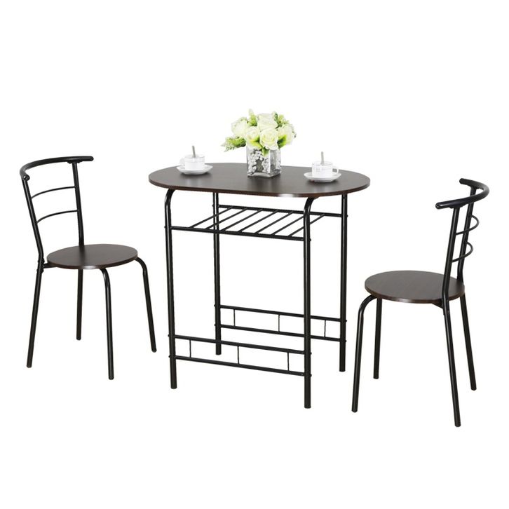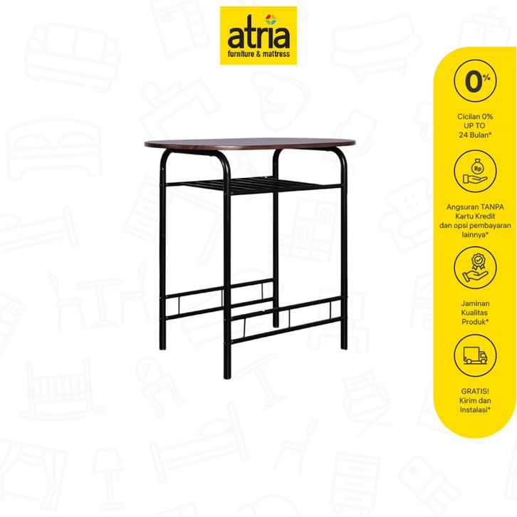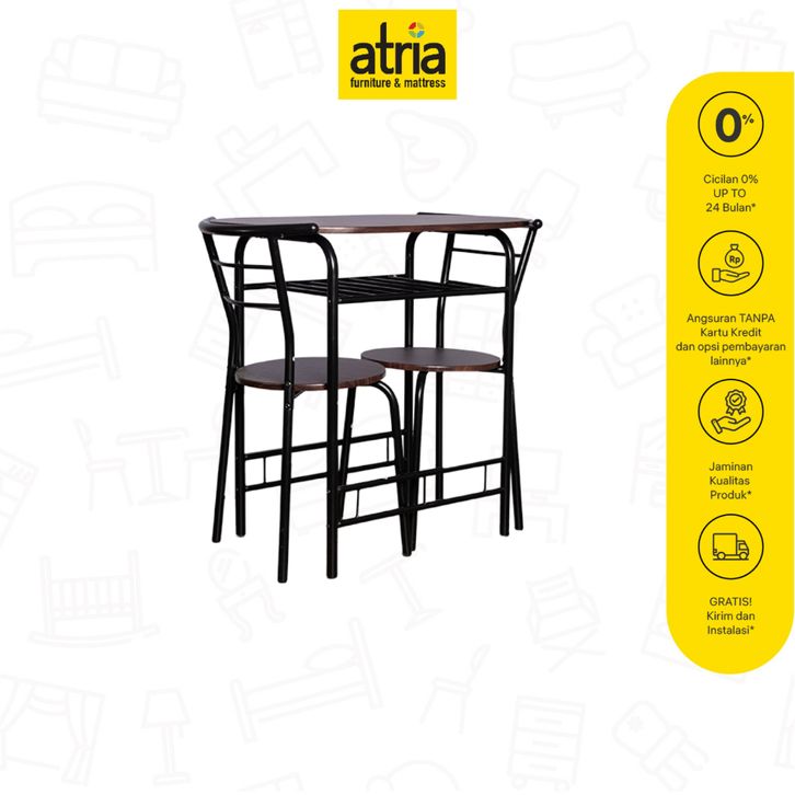 Meja Makan Set Meja Cafe Set Atria Octan Meja Makan Set Minimalis 1 Table + 2 Chair Dark Brown&Black