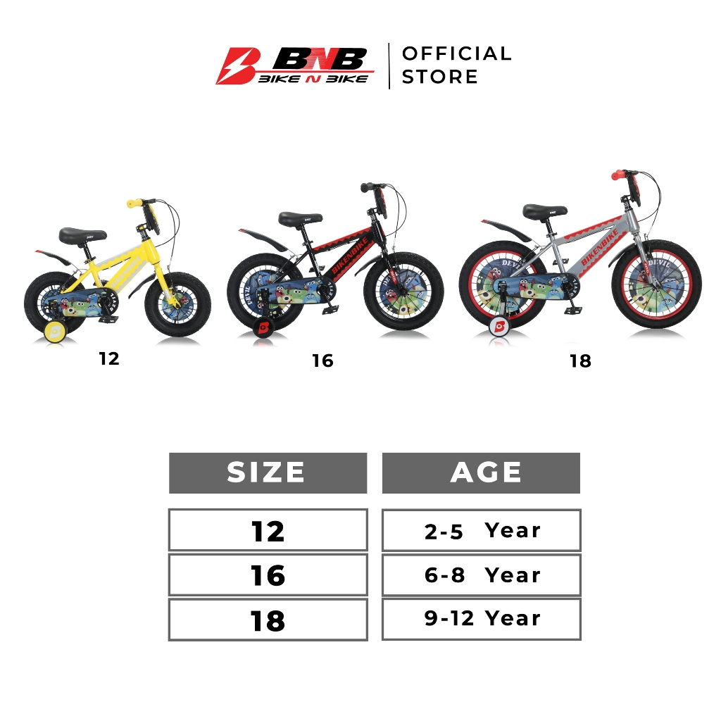 Bikenbike - Sepeda Anak Cowo Usia 3 - 9 Tahun Bmx Devil Ukuran 12 16 18 Inch Ban 2.50