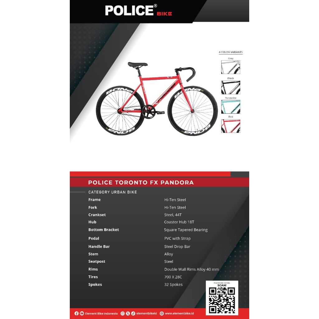 POLICE BIKE FIXIE TORONTO FX PANDORA ALLSIZE 1SP BY ELEMENT - Original Sepeda Balap / Road Bike / Sepeda Vixie