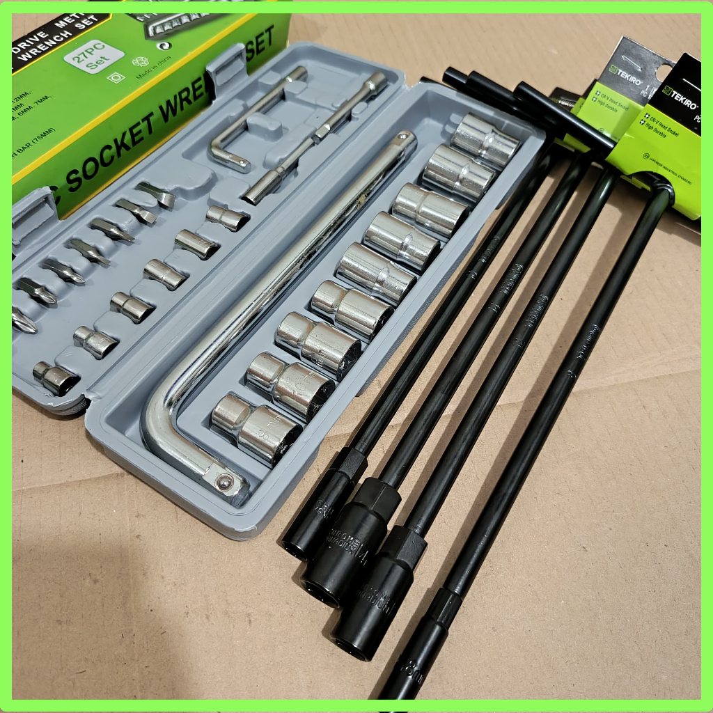 PROMO KUNCI PAKET LENGKAP TEKIRO KUNCI T 8-10-12-14MM + KUNCI SHOCK SOCK SOK SET 27PCS KTP