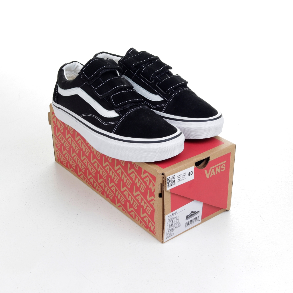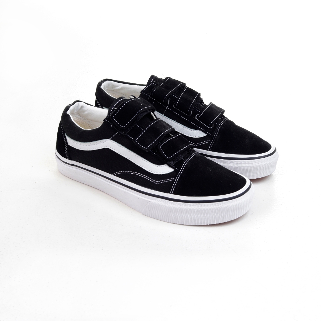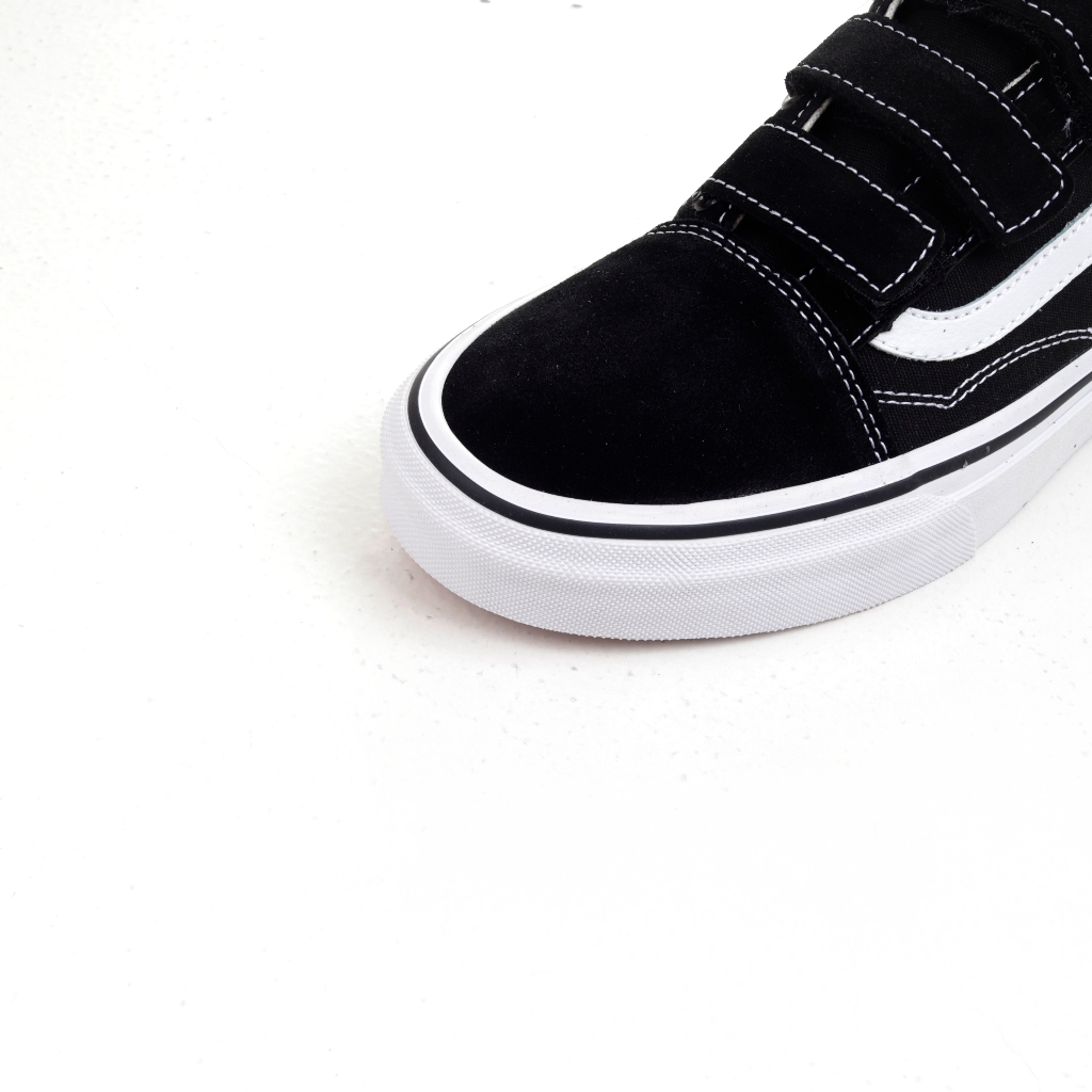 Vans official Store - Old Skool Velcro Black White - Sepatu Vans Original - Promo Sepatu Pria Dewasa Oiginal